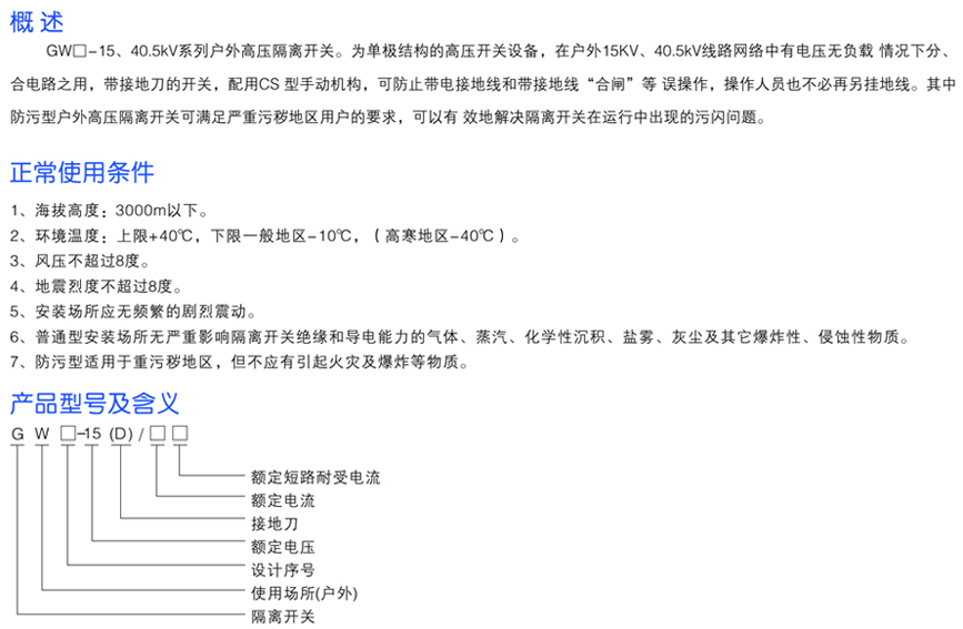 GW口-15系列戶外高壓隔離開關