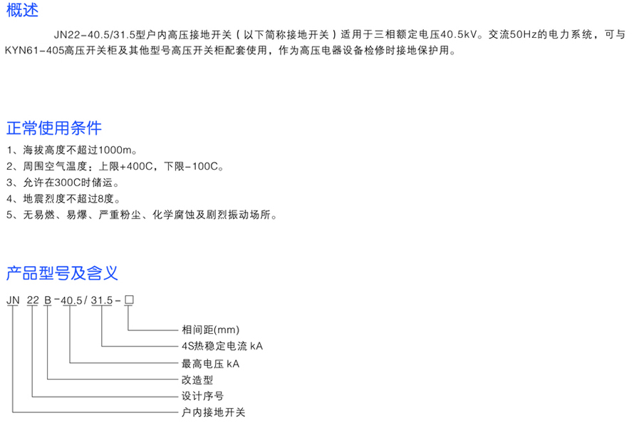 JN22B-40.5/31.5戶內(nèi)高壓接地開(kāi)關(guān)