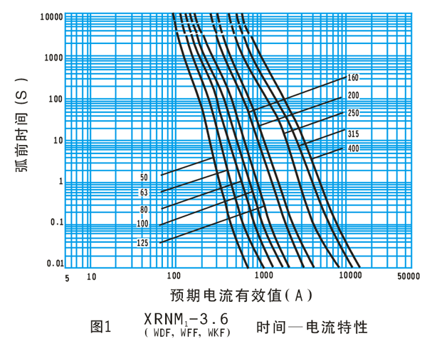 (2)時間---電流特性曲線如(圖1),最小開斷電流以上部分用虛線表示。