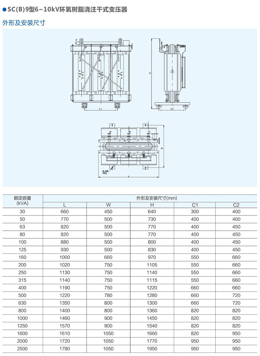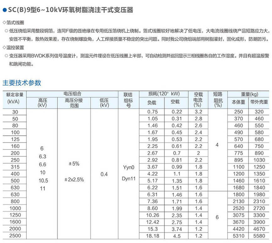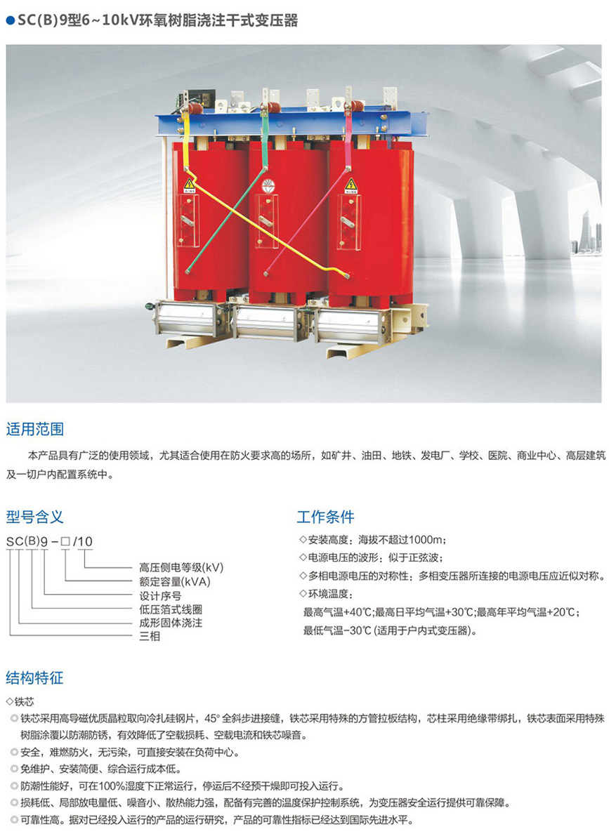 SC(B)9型6~10kV環(huán)氧樹脂澆注干式變壓器